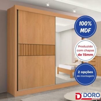 3{%%}Descrição#montagem{%%}Guarda-Roupa Casal 2 Portas Titanium Ripado MDF Cinamomo/Off White Larg. 2.20m DDoro