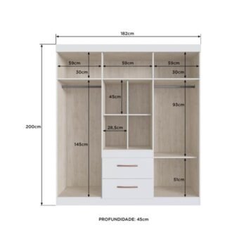 Guarda-Roupa Santiago 90906 1,80 m Off White/Nogueira – DORIPEL