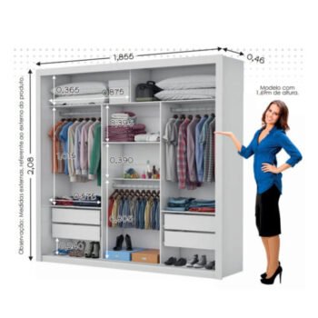 Guarda-Roupa Veneza/Clara/Berlim Plus(1 Porta espelhada) 1,855 m Cinamono/Branco – CARIOCA MÓVEIS