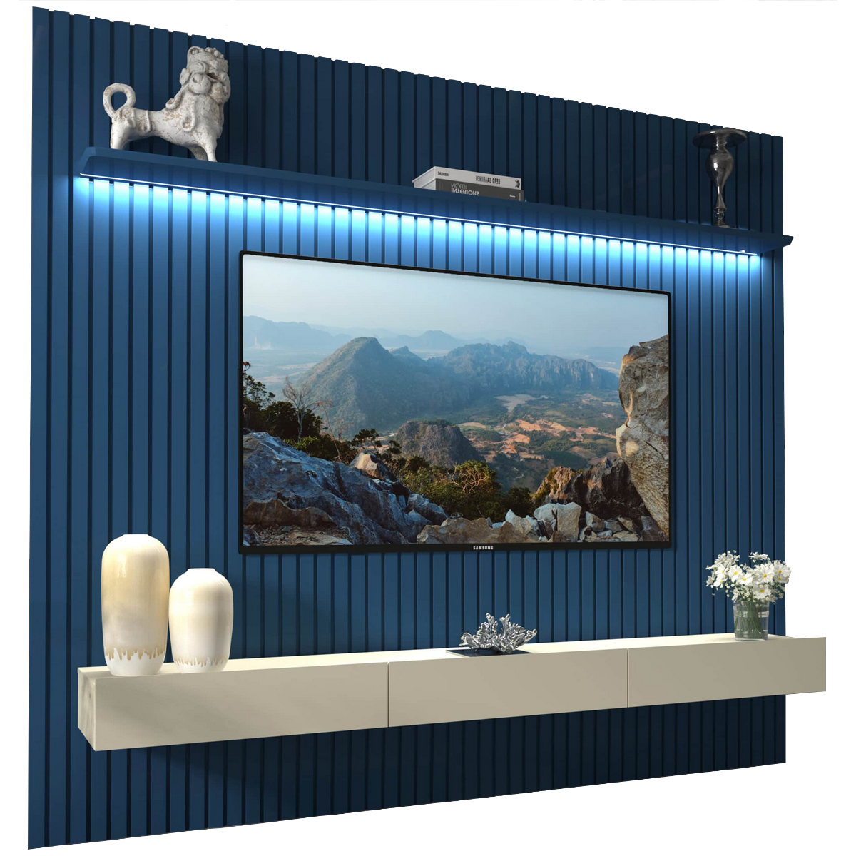 Home até 85″ Nobre Ripado (Com Nicho) Azul/Off White – GELIUS