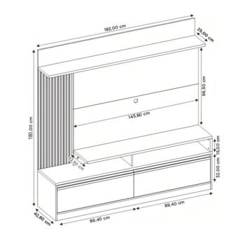 3{%%}Descrição{%%}Home NT 1295 Larg. 1.83m Freijó/Off C/ Detalhe Ripado para TV até 60″ – Notável