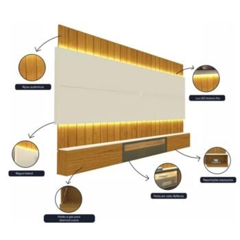 3{%%}Descrição#Instalação de LED{%%}Home Suspenso Soberano Larg. 2.60m Nature/Off Reflecta C/ Led Ripado 100% MDF para TV até 85″ – Gelius