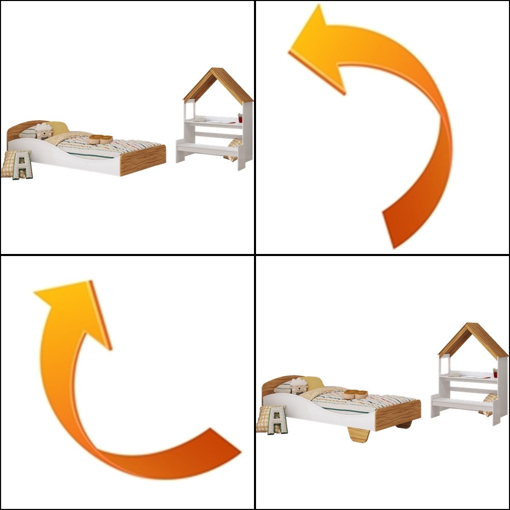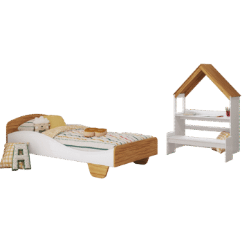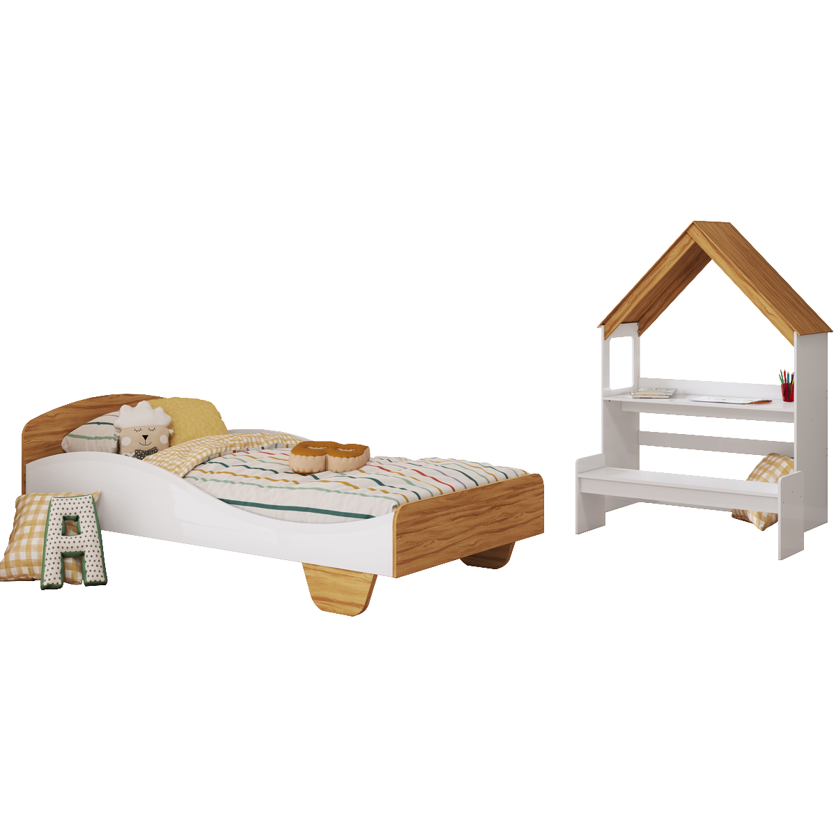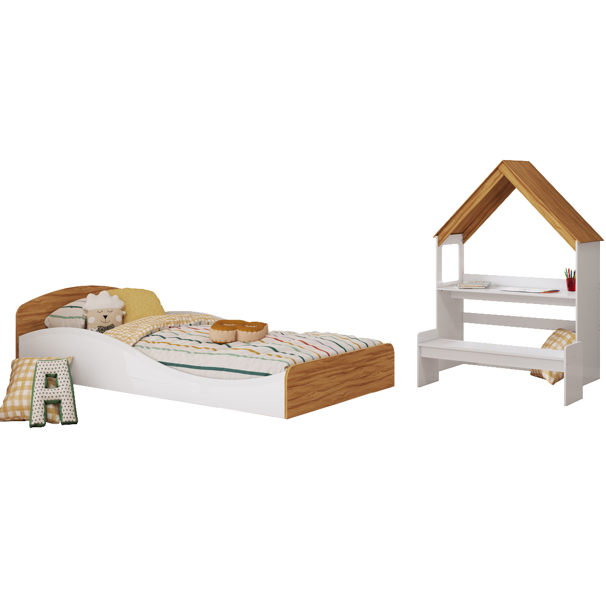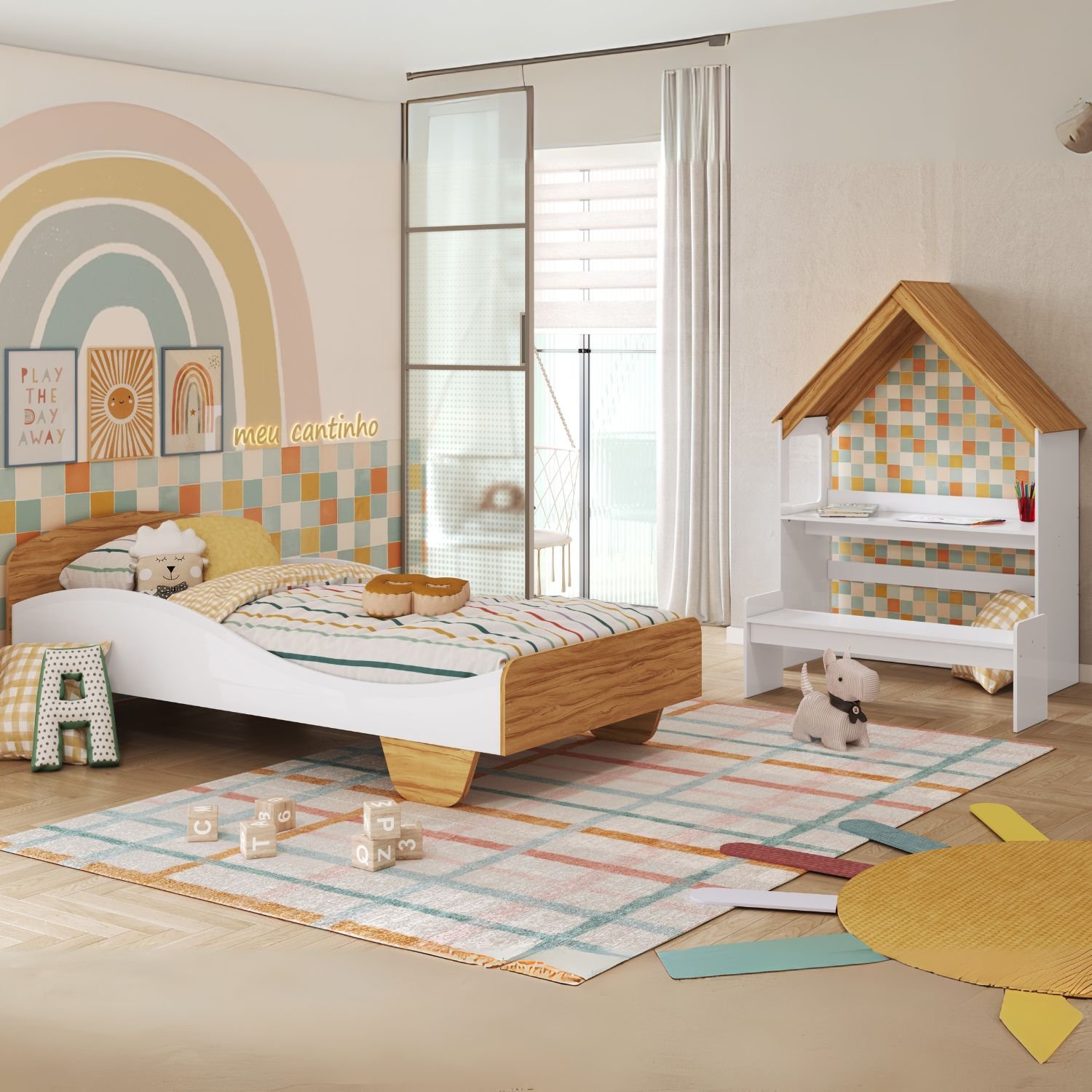 Kit Casinha + Cama Solteiro Sol Branco Brilho/Amêndoa – PEROBA MÓVEIS