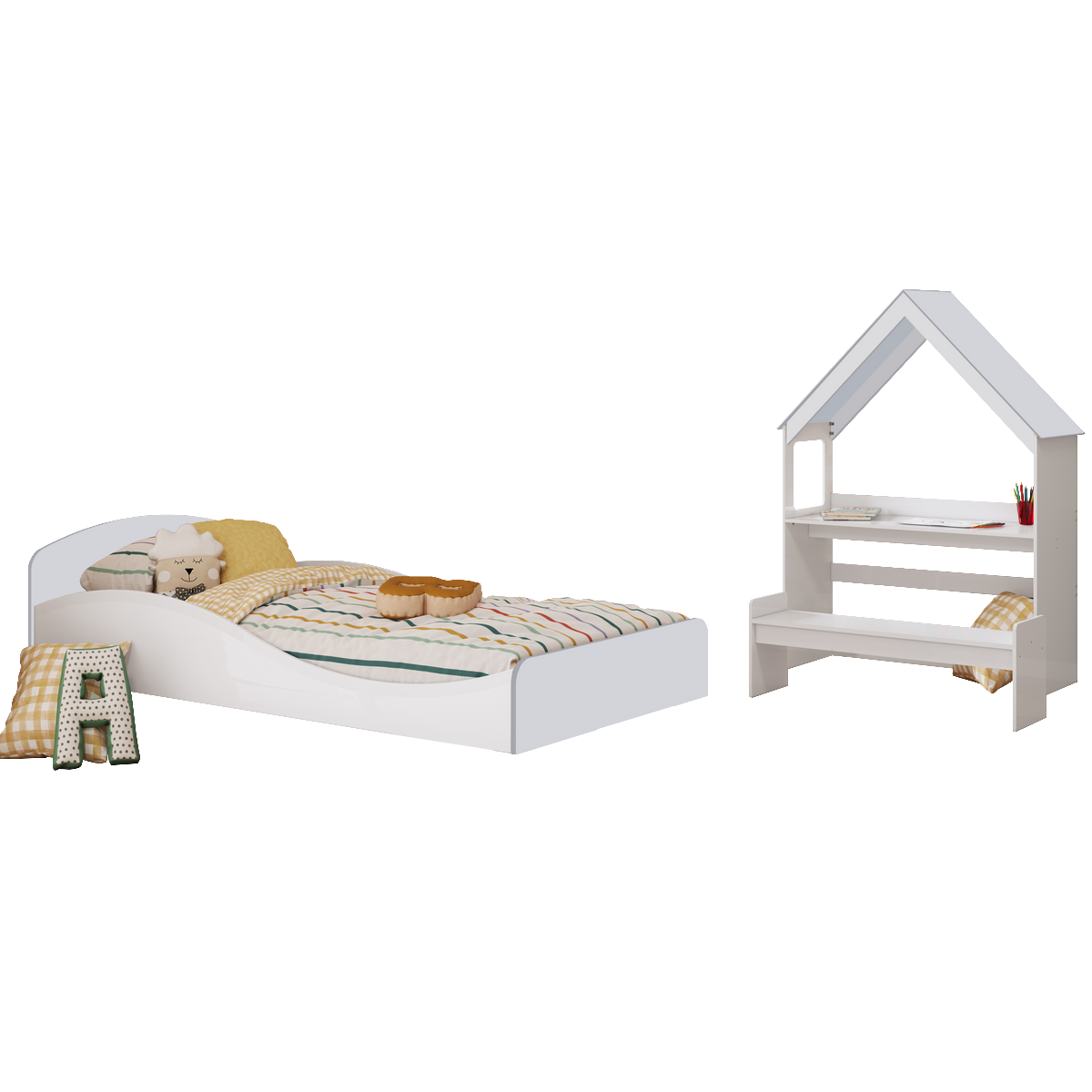Kit Casinha + Cama Solteiro Sol Branco Brilho – PEROBA MÓVEIS