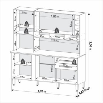 – Seis portas com dobradiças de pressão, sendo duas com vidro