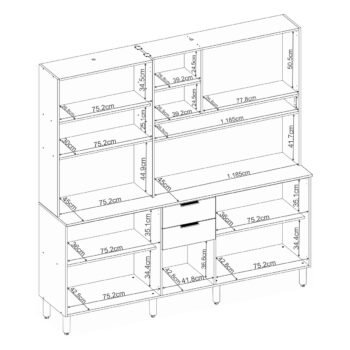 – Duas gavetas com corrediças telescópicas