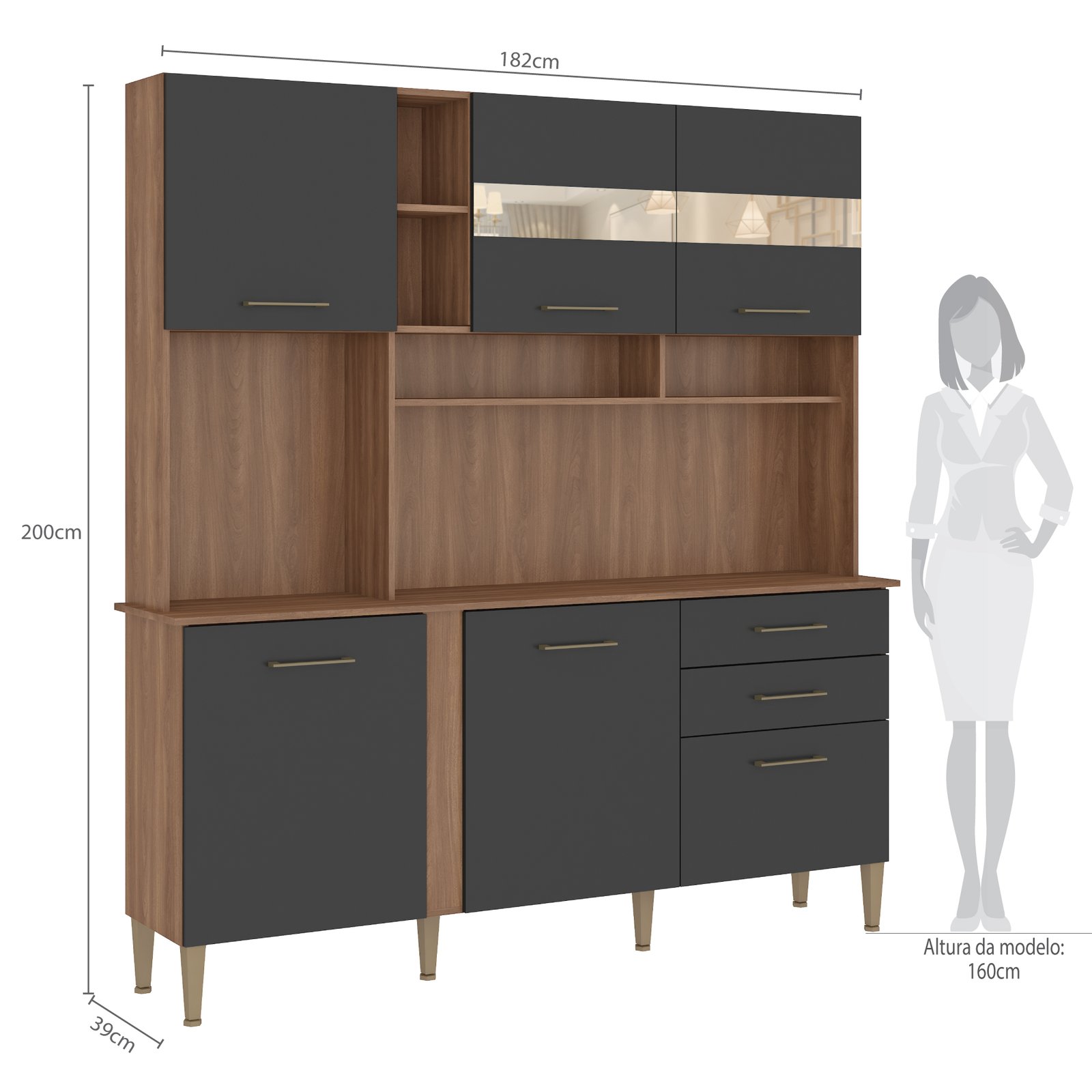 Kit Cozinha Nicole/Helena 1,82 Manchester/Grafite – FELLICCI