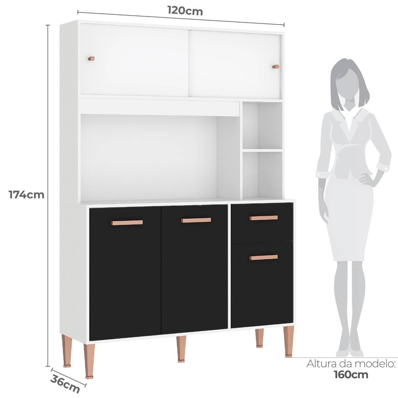 Kit Cozinha Pérola C212 1,20 m Branco/Preto – FELLICCI