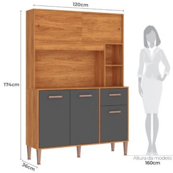 Kit Cozinha Pérola C212 1,20 m Cinamono/Grafite – FELLICCI