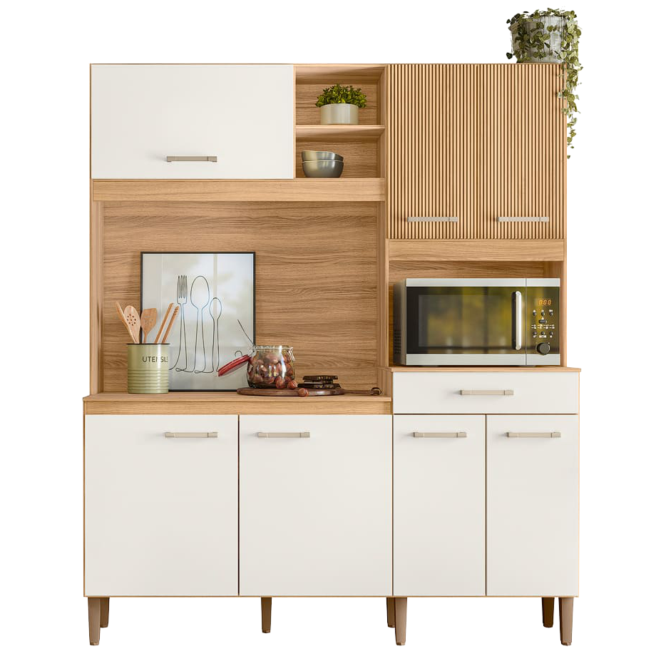 Kit Cozinha Yara 1,60 m Freijó/Off White Cristal/Ripado – NICIOLI