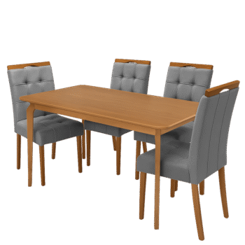 Mesa Alegra 120 Cinamomo com 4 Cadeiras Sophia Veludo Cinza Grafite – JCM MOVELARIA + WM DECOR