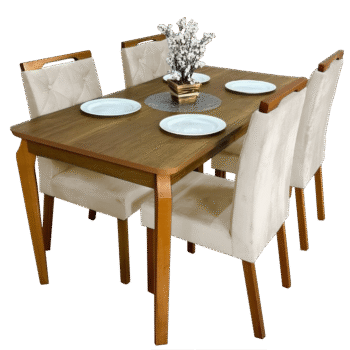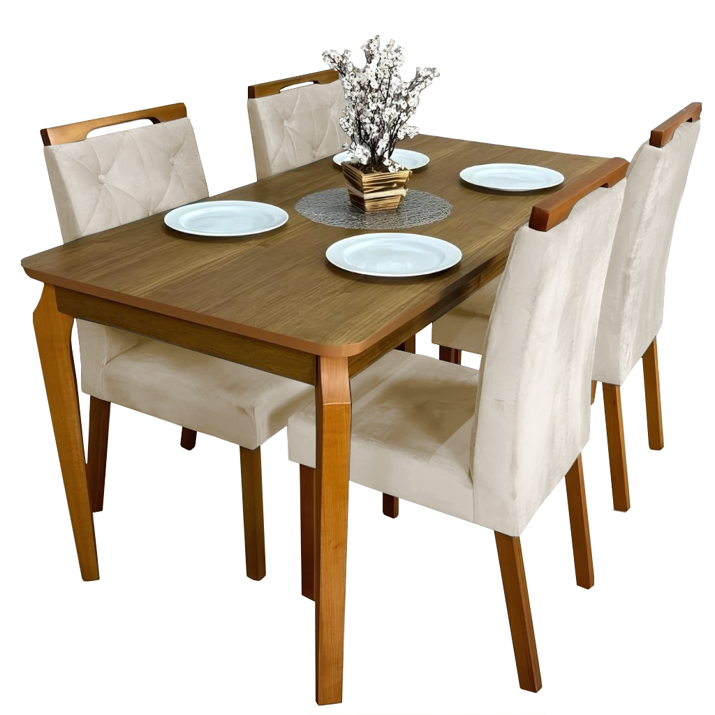 Mesa Alegra 120 Cinamomo com 4 Cadeiras Yasmim Veludo Bege – JCM MOVELARIA + KM DECOR