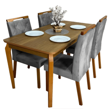 Mesa Alegra 120 Cinamomo com 4 Cadeiras Yasmim Veludo Cinza Grafite – JCM MOVELARIA + KM DECOR