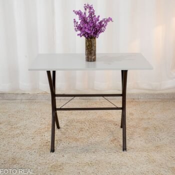 3{%%}Descrição{%%}Mesa Atlanta Base Cabo Frio Marrom Tampo Off Pedra 100×60 4 Cadeiras Assento Creme – Teixeira