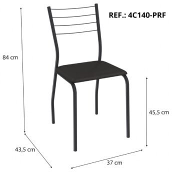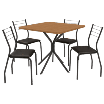 Mesa Creta 0,90 com 4 Cadeiras Malta CMC1078(M088/F090/4C140)Preto/Cinamomo – KAPPESBERG