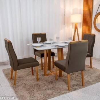 3{%%}Descrição#Como Montar{%%}Mesa de Jantar Pedro 120×80 Vidro Off/Base Madeira + 4 Cad. Lisboa Veludo Marrom 509 Madeira Art Assento – Entregue Montada