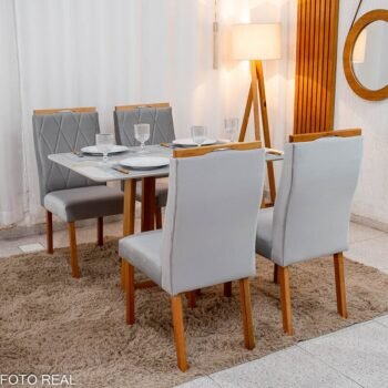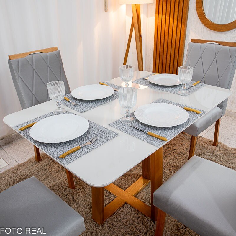 3{%%}Descrição#Como Montar{%%}Mesa de Jantar Pedro 120×80 Vidro Off/Base Madeira + 4 Cad. Lisboa Veludo Prata 514 Madeira Art Assento – Entregue Montada