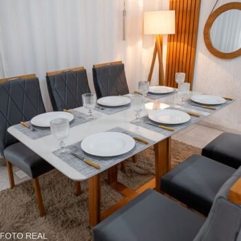 3{%%}Descrição#Como Montar{%%}Mesa de Jantar Pedro 160×80 Vidro Off/Base Madeira + 6 Cad. Lisboa Veludo Cinza 507 Madeira Art Assento – Entregue Montada