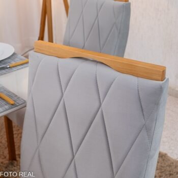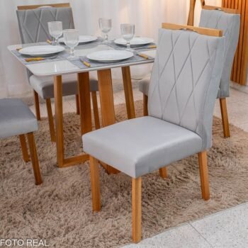 3{%%}Descrição#Como Montar{%%}Mesa de Jantar Pedro 90×90 Vidro Off/Base Madeira + 4 Cad. Lisboa Veludo Prata 514 Madeira Art Assento – Entregue Montada