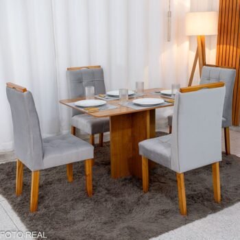 3{%%}Descrição{%%}Mesa de Jantar Salina 120×80 Londres Cinamomo Cel + 4 Cad. Londres Veludo Prata Madeira Minas Plac – Entregue Montada
