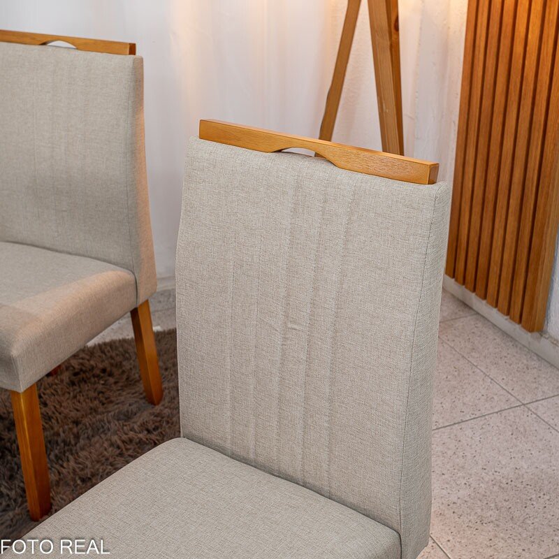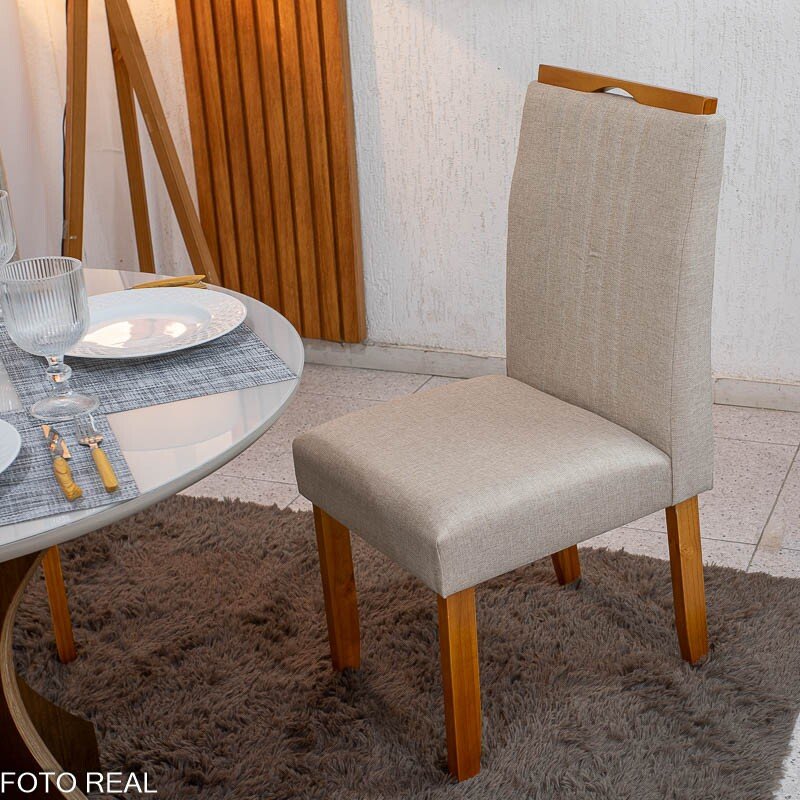 3{%%}Descrição{%%}Mesa de Jantar Siena Redonda 100cm Vidro Off/Base Cinamomo + 4 Cad. Atlanta Linho Bege Cru Madeira Minas Plac – Entregue Montada