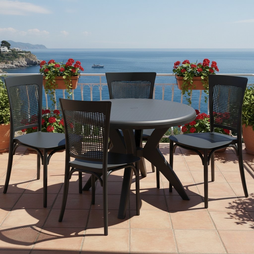 Mesa Deluxe 90 com 4 Cadeiras Robust Palha Preto – FORTE PLÁSTICO