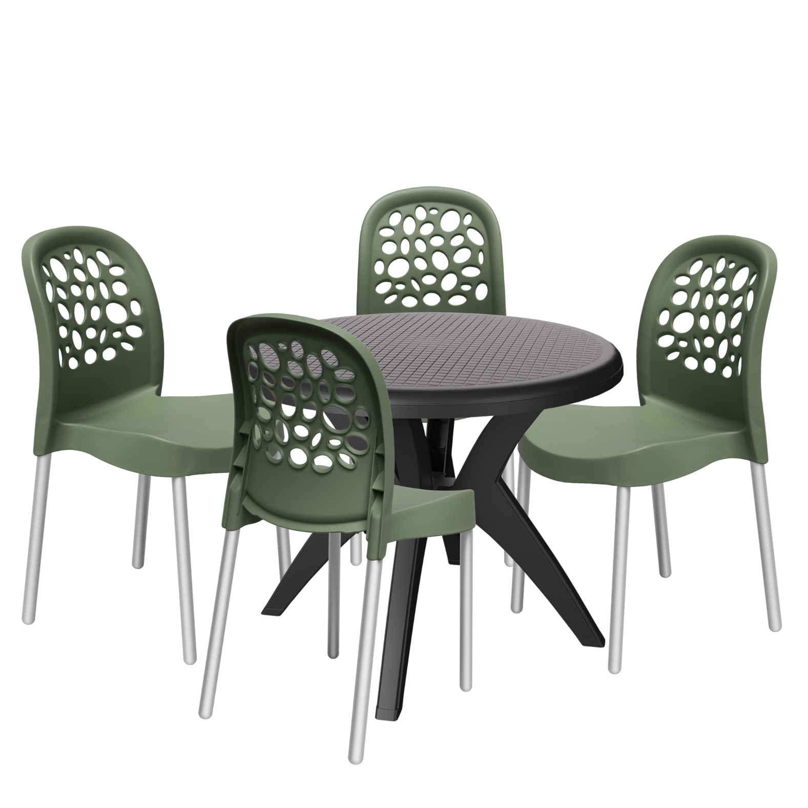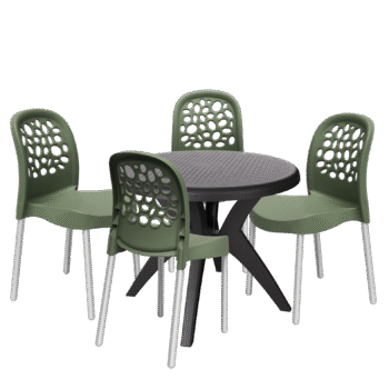 Mesa Deluxe 90 Preto com 4 Cadeiras Deluxe Verde – FORTE PLÁSTICO