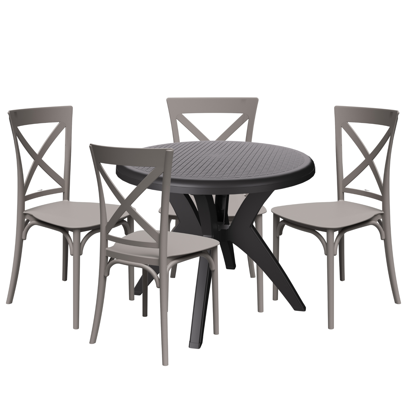 Mesa Deluxe 90 Preto com 4 Cadeiras Robust Cross Nude – FORTE PLÁSTICO