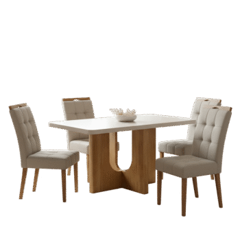 Mesa Dora 120 Cinamono/Off White com 4 Cadeiras Sophia Veludo Bege – VALDEMÓVEIS + WM DECOR