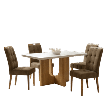 Mesa Dora 120 Cinamono/Off White com 4 Cadeiras Sophia Veludo Marrom – VALDEMÓVEIS + WM DECOR