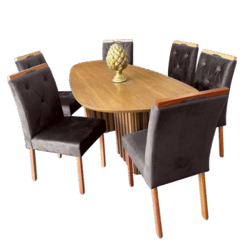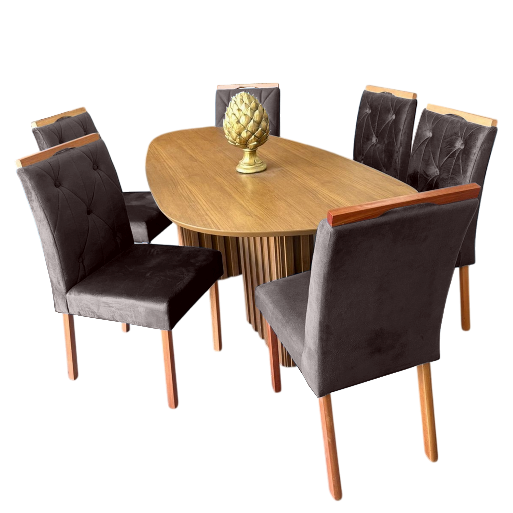 Mesa Isis 180 Freijó com 6 Cadeiras Yasmim Veludo Marrom – LEIFER + KM DECOR