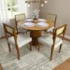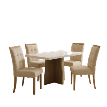 Mesa Jade 120 (Tampo 40 mm) Cinamomo/Off White com 4 Cadeiras Sophia Linho Bege – VALDEMÓVEIS + WM DECOR
