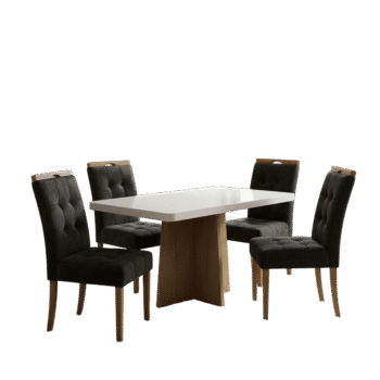 Mesa Jade 120 (Tampo 40 mm) Cinamomo/Off White com 4 Cadeiras Sophia Veludo Preto – VALDEMÓVEIS + WM DECOR