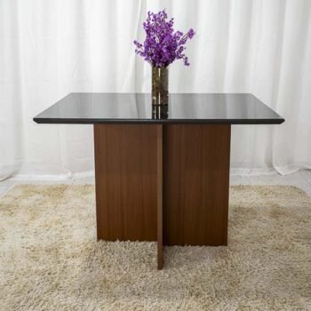 3{%%}Descrição#Como montar{%%}Mesa Jantar Helo 120×90 Tampo Grafite Vidro Preto/Base Mel – Poliman