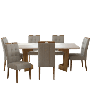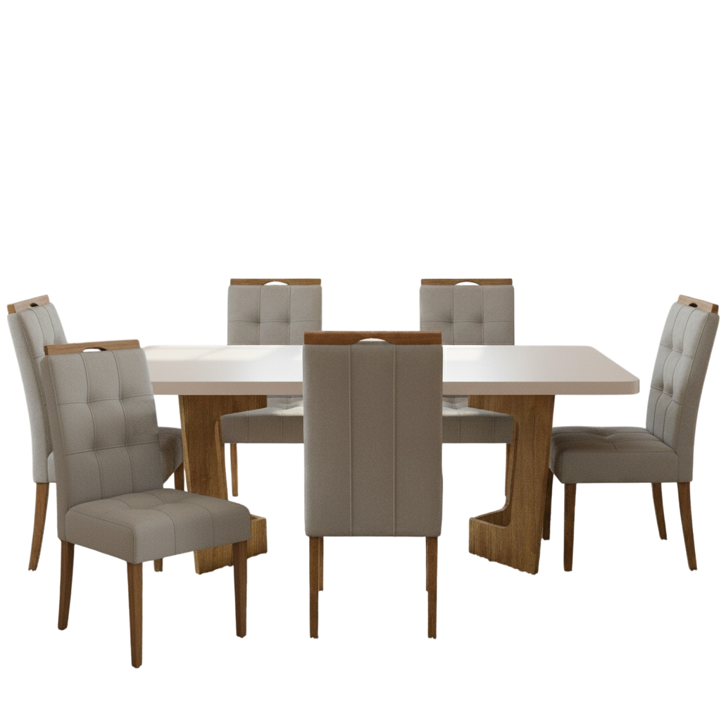 Mesa Liz 160 (Tampo 40 mm) Cinamomo/Off White com 6 Cadeiras Sophia Veludo Bege – VALDEMÓVEIS + WM DECOR