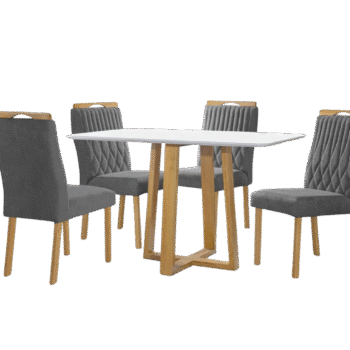 Mesa Pedro 120 Mel/Off White com 4 Cadeiras Gênova Veludo Grafite – ART ASSENTOS