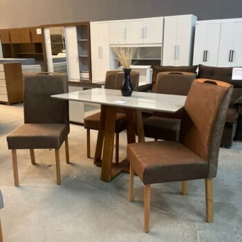 Mesa Pedro 120 Mel/Off White com 4 Cadeiras Priscila Imbuia Mel Veludo Marrom 1014 – ART ASSENTOS + AVALON DECOR