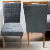 Mesa Pedro 120 Mel/Off White com 4 Cadeiras Stella Veludo Grafite – ART ASSENTOS + CLEFATOS DECOR
