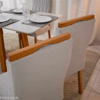 3{%%}DESCRIÇÂO{%%}Mesa Pedro Mel Vidro OFF 120×80 4 Cadeiras Genova Veludo Prata 514 Madeira Maciça Art Assento – Entregue Montada