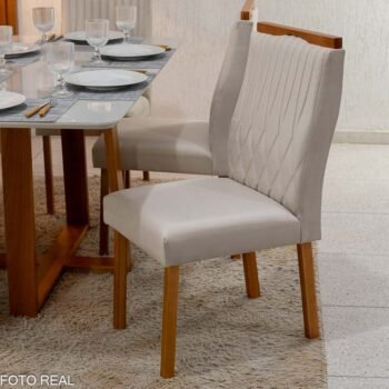 3{%%}DESCRIÇÂO{%%}Mesa Pedro Mel Vidro OFF 160×80 6 Cadeiras Genova Veludo Cinza 507 Madeira Maciça Art Assento – Entregue Montada