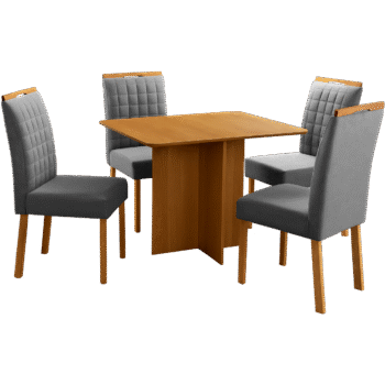Mesa Pérola 90 Imbuia Mel (Tampo Viena s/vidro) + 4 Cadeiras Pandora 01 Veludo Cinza Grafite 414 – CARVALHO DECOR