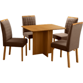 Mesa Pérola 90 Imbuia Mel (Tampo Viena s/vidro) + 4 Cadeiras Pandora 01 Veludo Marrom 134 – CARVALHO DECOR