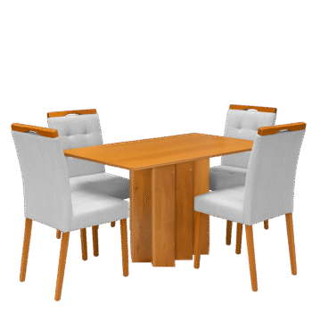 Mesa Recife 120 Cinamono Laminado com 4 Cadeiras Sophia Linho Cinza Prata 206 – CEL MÓVEIS + WM DECOR