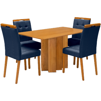 Mesa Recife 120 Cinamono Laminado com 4 Cadeiras Sophia Veludo Azul – CEL MÓVEIS + WM DECOR