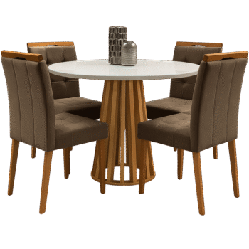 Mesa Redonda Berlim 100 Cinamono/Off White com 4 Cadeiras Sophia Veludo Marrom – CEL MÓVEIS + WM DECOR