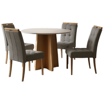 Mesa Redonda Celebrare 100 Amêndoa Clean/Off White com 4 Cadeiras Sophia Veludo Cinza Grafite – LOPAS + WM DECOR