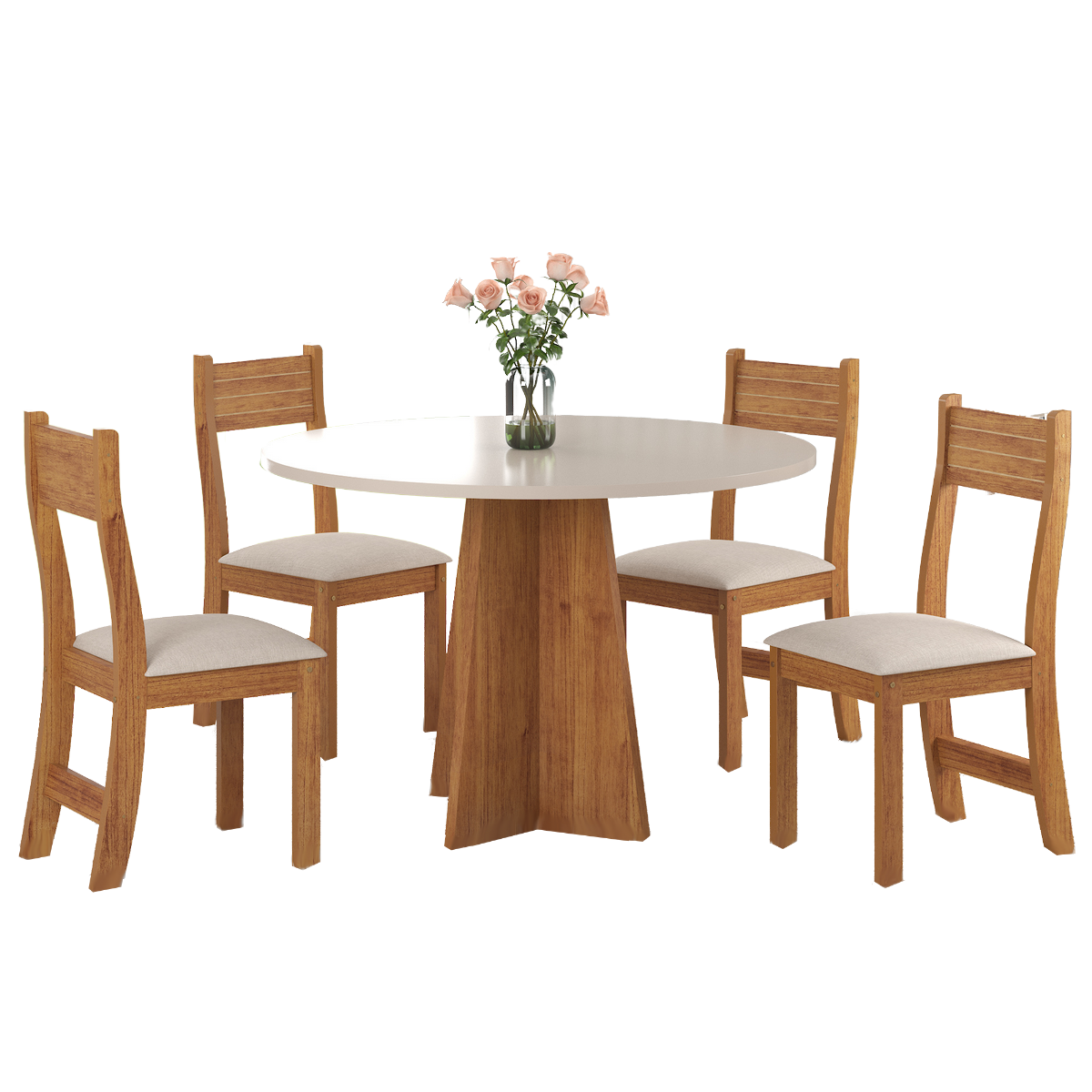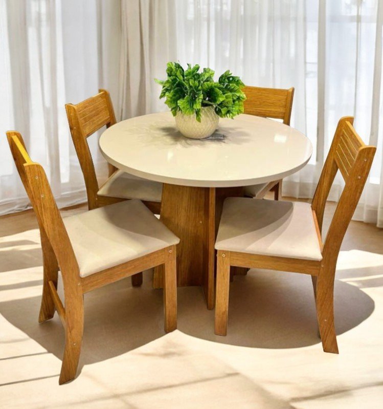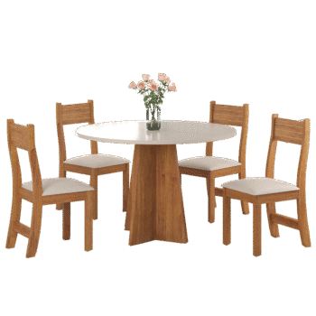 Mesa Redonda Flipp/Slin Mel/Blonde com 4 Cadeiras Brisa Veludo Marfim – VIERO MÓVEIS