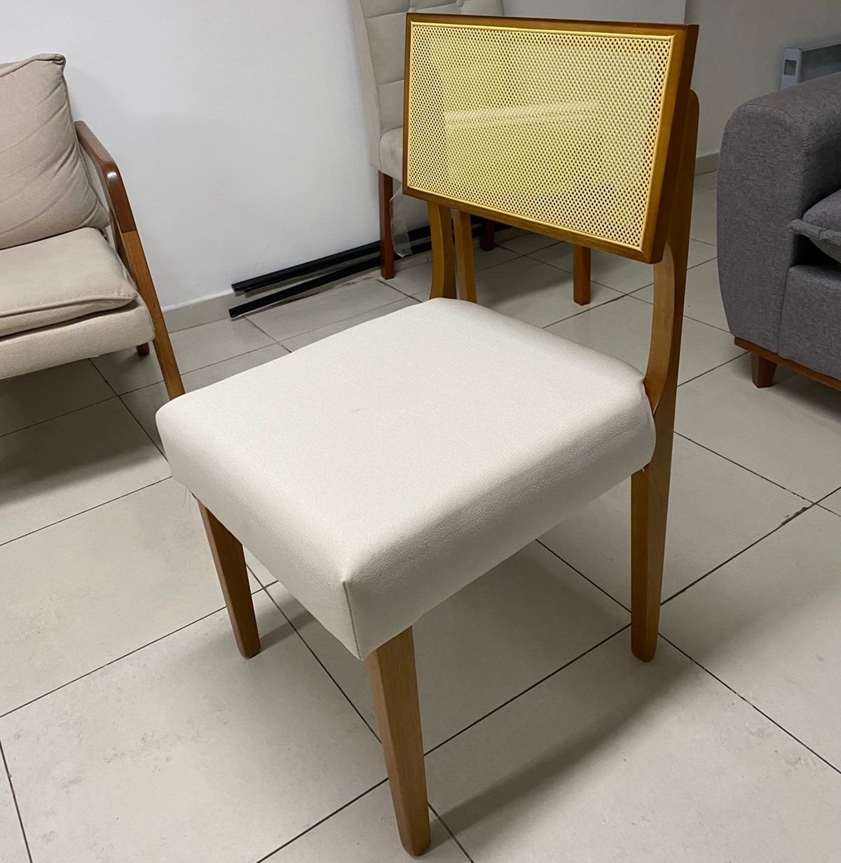 – Assento em linho bege