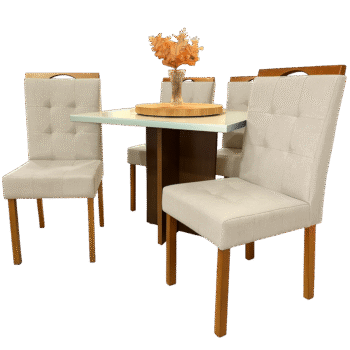 Mesa Salinas 120 Cinamomo/Off White com 4 Cadeiras Sophia Linho Bege 200 – CEL MÓVEIS + WM DECOR