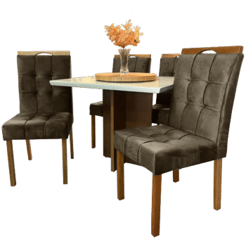 Mesa Salinas/Helô/Los Angeles 120 Cinamomo/Off White com 4 Cadeiras Sophia Veludo Marrom – CEL MÓVEIS + WM DECOR